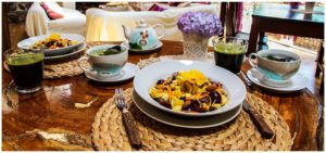 - Delicious, local, mostly organic meals. Mainly vegetarian, yet chef works with the requests of each group!